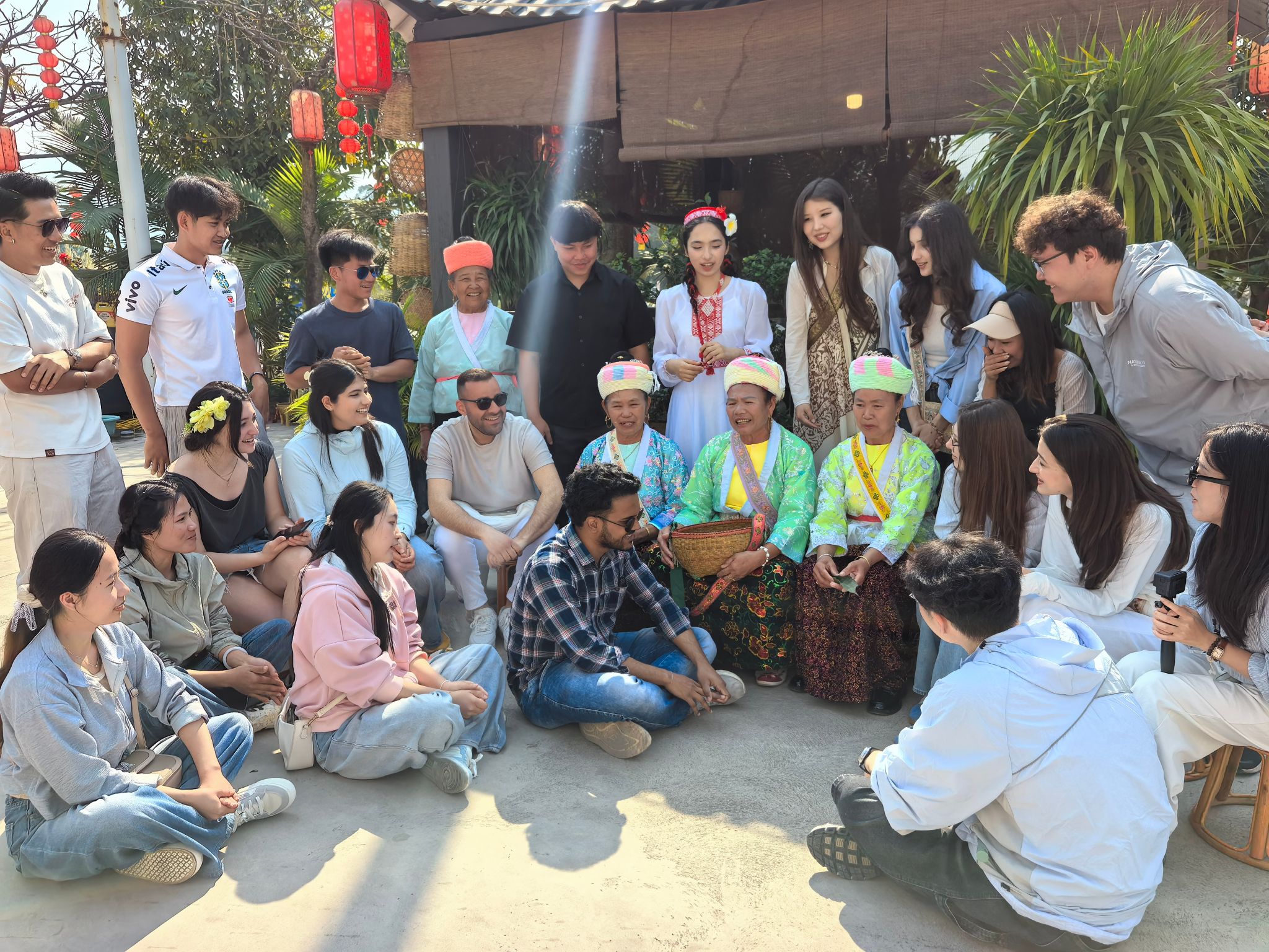 活动期间,留学生们开启了丰富多彩的文化体验之旅。一是茶文化研学。走进白茶馆,了解大白茶的种植、制作工艺与品饮文化,观看学习采茶、制茶工艺,品尝和感受中国茶文化的深厚底蕴与独特韵味;二是民俗文化体验。在勐卧双塔广场参与采花取水堆沙、万人点灯祈福等傣族传统活动,在文体中心广场参与万人赶摆,融入傣历新年热闹氛围,近距离感受傣族泼水节的文化内涵与民族风情,在民俗体验院落感受彝族说唱文化的魅力;三是体验传统美食文化。从取叶、洗叶、籼糯米制备到包裹上锅,亲手制作傣族美食粑粑;四是非遗文化交流。参观非遗会客厅,与当地非遗传承人面对面交流,了解傣族织锦、彝族刺绣、云南金陀螺等传统技艺,感受非遗文化的生命力与创造力。