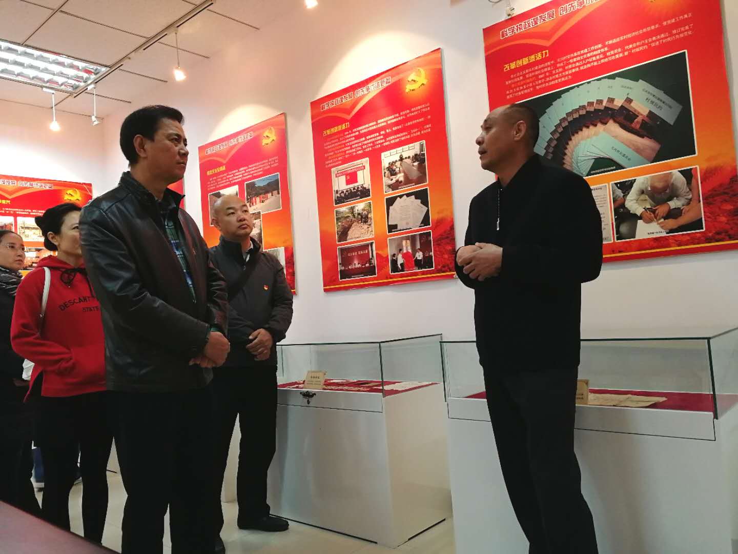 20日上午,党员们历时2小时到达目的地,首先参观了北沟村的党建成果展览室,北沟村党支部王全书记图文并茂地介绍了北沟村的情况,使党员同志们对北沟村的发展历程有了初步了解。