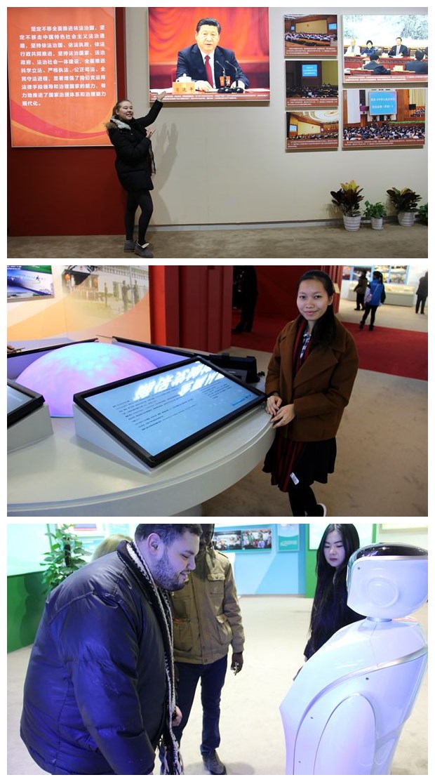 此次参观共进行了两个半小时,参观结束后,每个学生都表达了自己内心的激动心情。来自柬埔寨的陈玉美说道:“中国在国家主席习近平的英明领导下,仅仅用了五年的时间,使得各个领域都有了很大的发展和变化,这一切不但是中国自己的收获,更是世界的惊喜,中国的付出让世界更丰富、更精彩。”来自哈萨克斯坦的欧拉则表示自己很荣幸地参与到这个活动中来,这个活动对她来说,可遇而不可求,因为通过这次活动,她了解了中国最近几年的发展,她强调现在非常期待今后中国的发展。面对展馆中的各种新科技,来自突尼斯的为信赞叹道:“展馆中展示了中国最近五年的成就以及一些非常有意思的体验产品,更有很多关于中国的技术创造。我没来之前,认为这个展览会给我们简单地介绍关于中国最近五年的成就,但是没想到中国在这五年会创造那么多的发明和成就,最让我惊讶的事儿就是我第一次跟机器人聊天,我没想到会有这样的机会,这太令我兴奋了。”