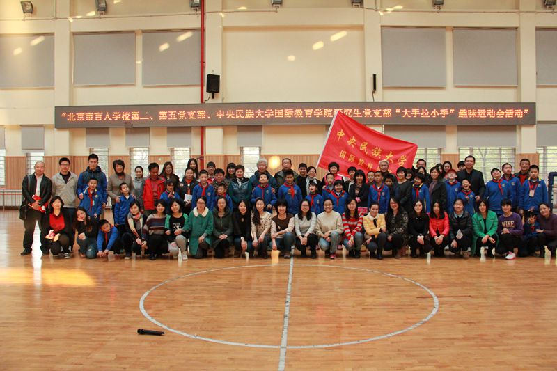 2013年11月21日,必威西汉姆联13级30余名硕士和博士研究生党员在李锷副书记和祝捷老师的带领下,赴北京市盲人学校开展党支部活动并和盲校小同学们一起参加了“大手拉小手”趣味运动会。