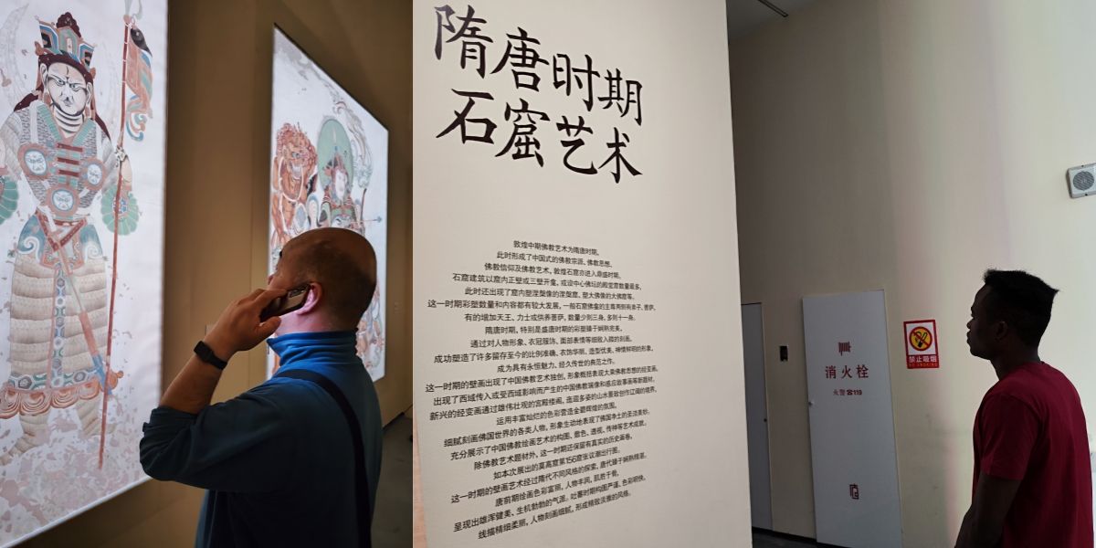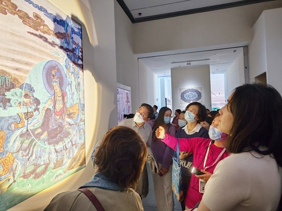 通过此次观展活动,党员同志们更加深刻理解了习近平总书记提出的“坚守大漠、甘于奉献、勇于担当、开拓进取”的16字莫高精神。作为中国文化传播的践行者,党员同志纷纷表示要在一线教学中弘扬莫高精神,在国际中文教育中发挥传统文化在文明交流互鉴的作用,展现文化更深沉、更持久的力量。国际学生通过展览中丰富多元的感知体验,欣赏敦煌艺术瑰宝,了解敦煌艺术深厚的内涵和独特的美学风范,理解中国内地与边疆、中华与域外、世俗与宗教的交流融汇。此次展览也激励学生以纵深的眼光看待中华文化与世界文明,珍惜人类发展历程中的文化遗产。