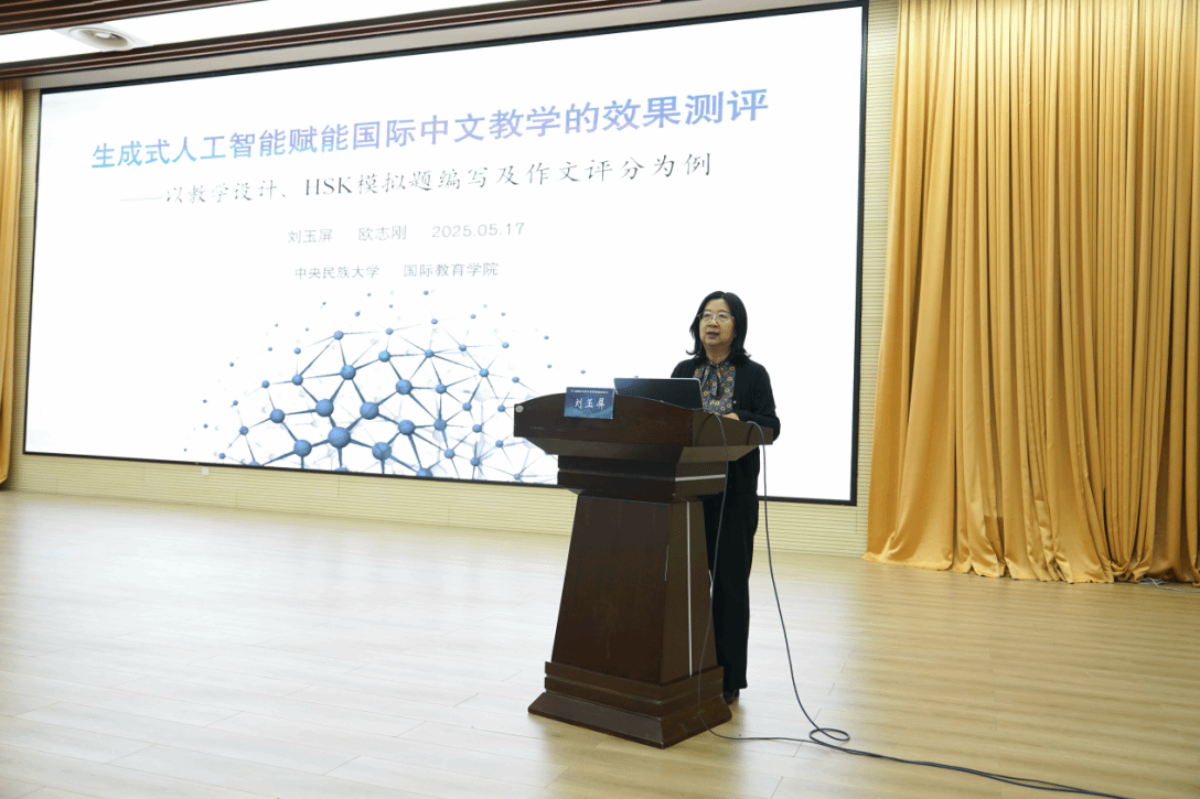 主旨报告中,我院刘玉屏教授分享了题为《生成式人工智能赋能国际中文教学的效果测评》的研究。该研究在阐述生成式人工智能关键技术、使用模式、效果测评的基础上,对大语言模型赋能国际中文教师教学活动展开了实证研究,最后就如何在教育教学中使用生成式人工智能给出了具体建议。