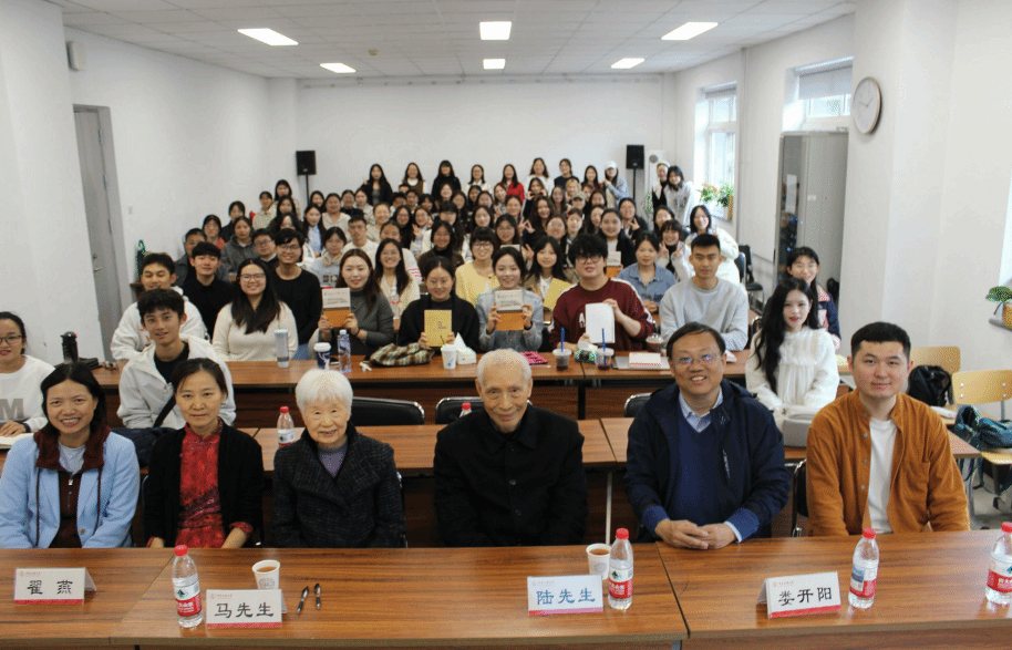 互动环节气氛热烈,师生围绕语言学核心议题展开对话。马真先生提出“虚词教学落地”的观点,建议“以语义背景设计练习”,将抽象语法规则转化为实践;陆俭明先生则就“青年学者如何入门研究”答疑解惑,鼓励大家从“微小语言现象切入”,称其为学术创新起点。