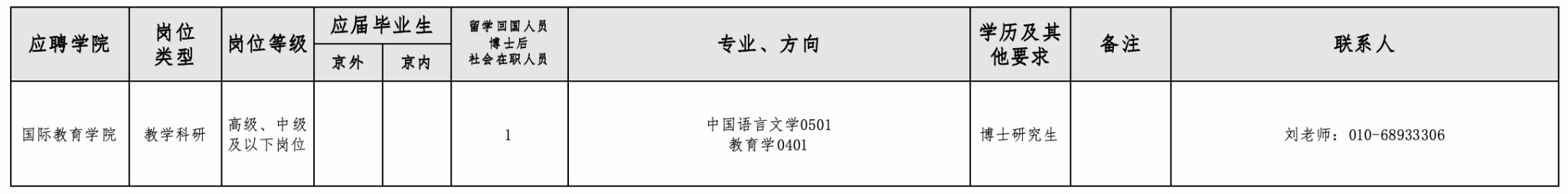 6.其余计划招聘人员根据学校工作安排,需到海淀校区和丰台校区工作。